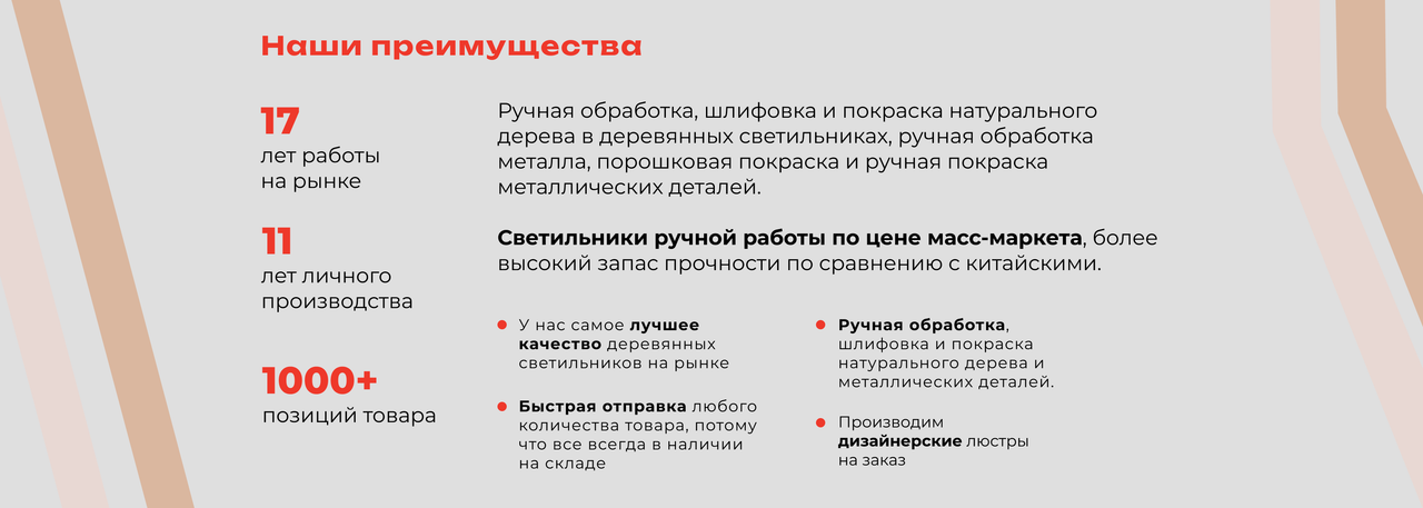 дропшипперам - вам не обязательно иметь собственный склад для реализации светильников: мы можем отправлять товары прямо вашим клиентам;