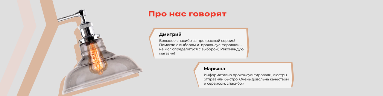 На сайте всегда есть актуальная информация о товарах: если вы видите светильник «в наличии», можете рассчитывать на быструю доставку со склада в течение двух-трех дней.