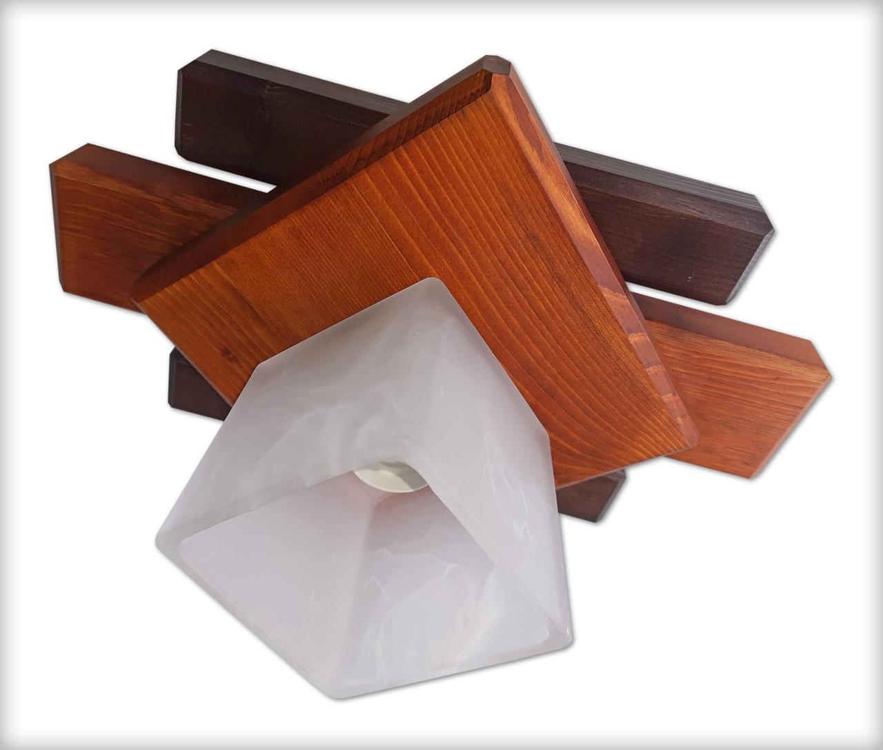 Люстра стельова дерев'яна на один плафон для кухні, спальні, дитячої, коридору, гардеробної Троя/1 коричнева